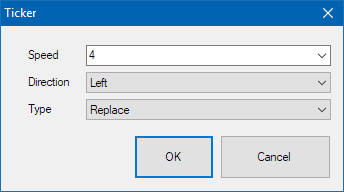 Type can be Add or Replace. Replace restarts the ticker each time the contents changes, Add will append the new content to the end of the ticker without affecting the currently playing content.