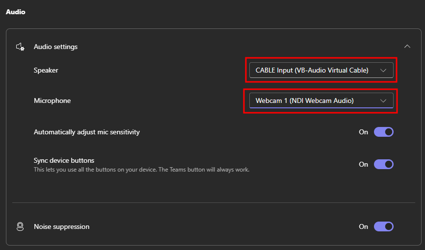 If you have a paid version of Teams such as a subscription plan or business account, you can instead utilise the NDI capabilities included with Teams. The steps for that can be found in the below linked knowledge base article: